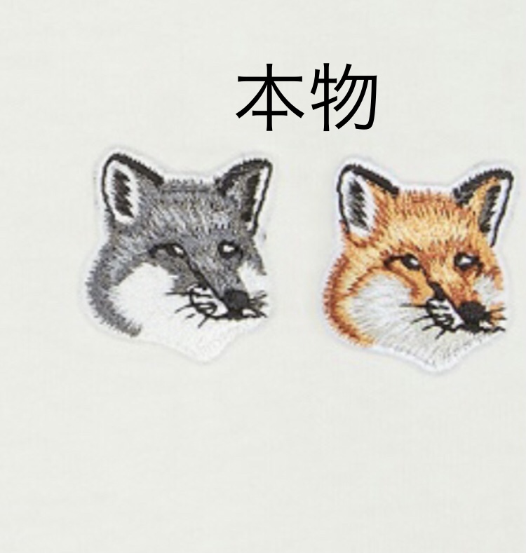 インスタで”メゾンキツネ”を検索してみてください。多くの方が偽物を着ながらドヤ顔でメゾンキツネTシャツをアップしています。ちなみに偽物は白・黒・ネイビーが多数です。刺繍のため必ずしも同じ顔とは限りません。