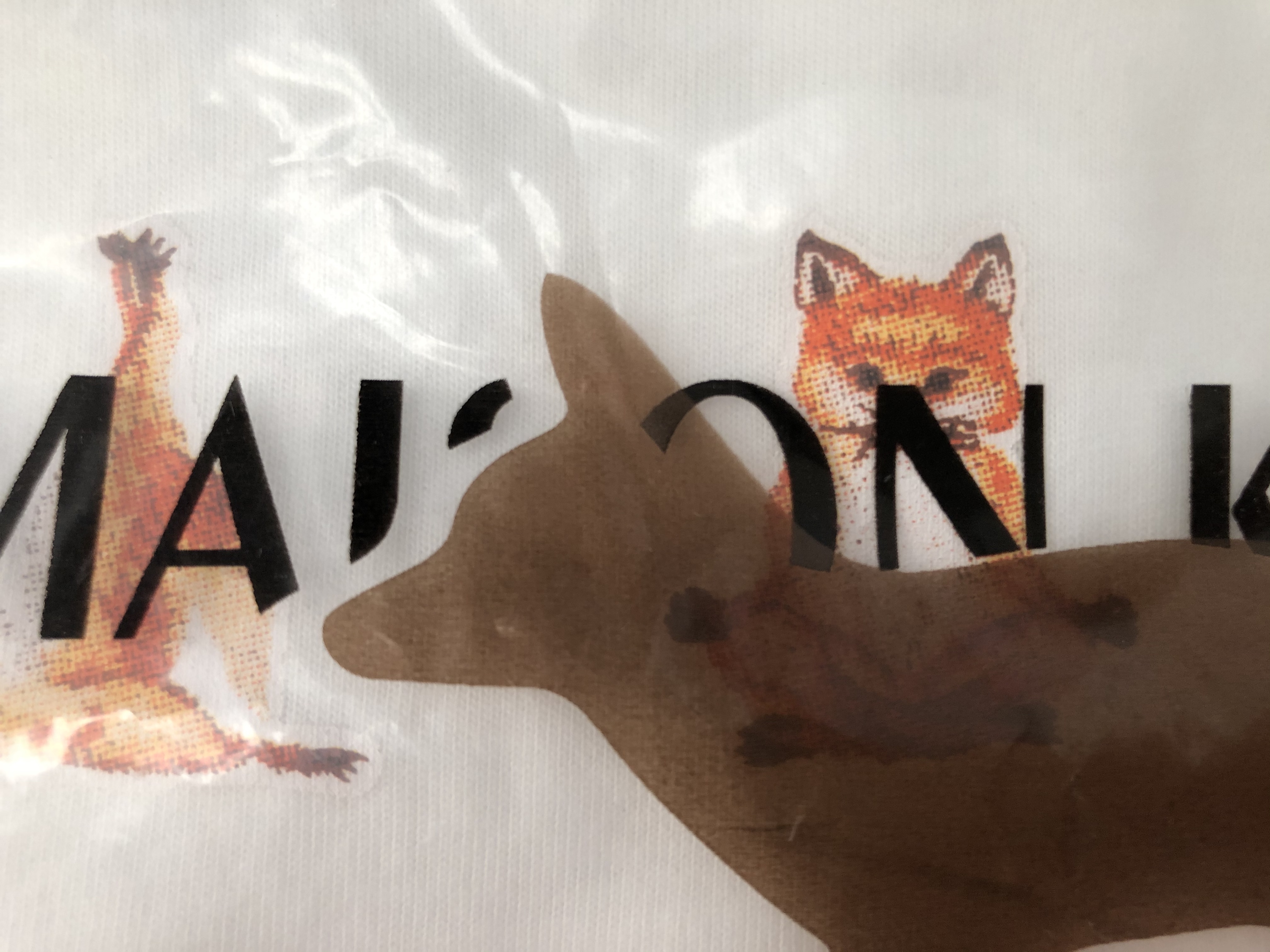 インスタで”メゾンキツネ”を検索してみてください。多くの方が偽物を着ながらドヤ顔でメゾンキツネTシャツをアップしています。ちなみに偽物は白・黒・ネイビーが多数です。刺繍のため必ずしも同じ顔とは限りません。